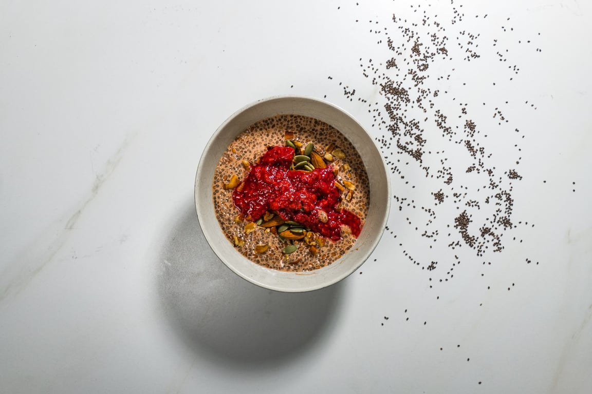 Ingredients: coconut plant-based beverage, raspberry, chia seeds, flax seed, pecans, pumpkin seeds, almonds, pecans, cocoa powder, stevia, stevia, cinnamon, cinnamon